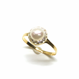 ANILLO ORO 18KT 2 CIRCONITAST PERLA PESO G0,8
