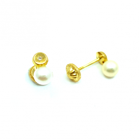 PENDIENTE ORO 18KT BEBE TU Y YO PERLA 3MM PESO 0,40G