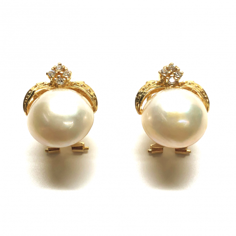PENDIENTE ORO 18KT CUAJO CIRCONITAS 2 HOJAS PERLA JAPONESA 12MM CIERRE OMEGA DIMENSIONES 14X17MM PESO G4,7