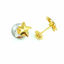PENDIENTES ORO 18KT LUNA-ESTRELLA BICOLOR D6,5X8,5MM PESO G0,60