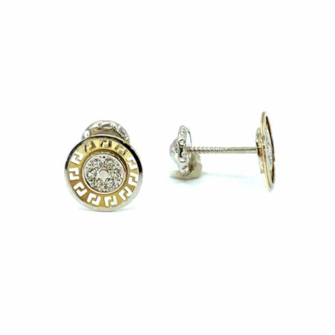 PENDIENTES ORO 18KT BEBE CIRCULO BICOLOR GRECA D8MM PESO G0,65
