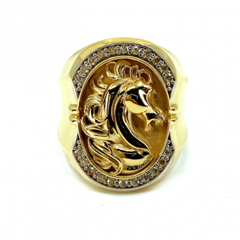 SELLO ORO 18KT CABEZA CABALLO CIRCONITAS D25MM PESO G9,65